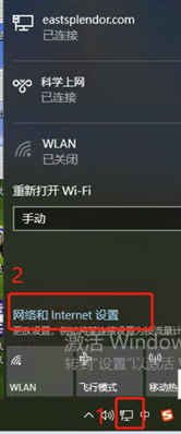 (或无线网络图标),点击“打开网络和Internet设置”