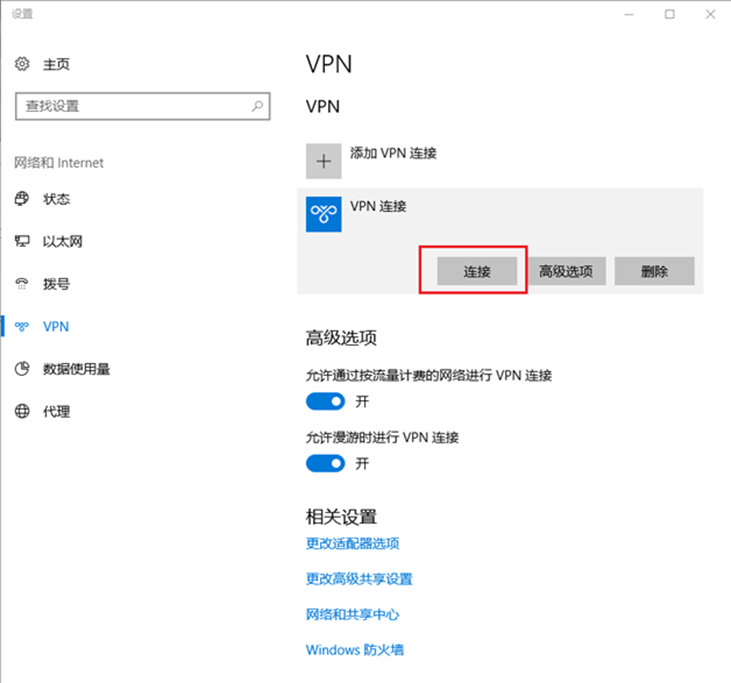 4.再点击确定,连接VPN,如下图所示: