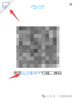 1.启动电脑上安装好的云之家软件,此时软件会提示你【使用云之家APP扫描二维码】来进行登录,如果你不想通过此方式来进行登录的话,就点击登录窗口左上角的【电脑】图标。